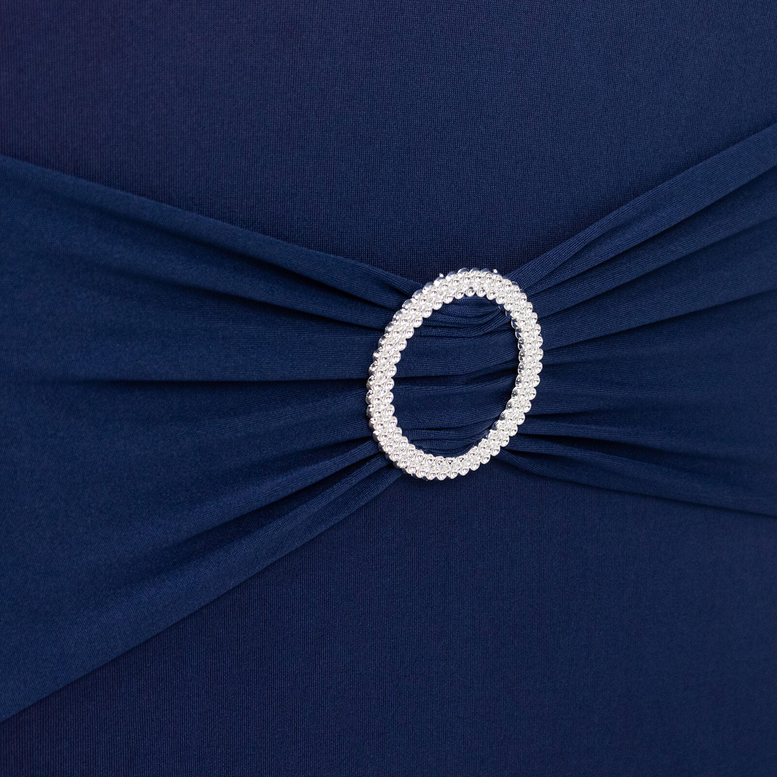Navy Blue Spandex Banquet Chair Cover with Silver Rhinestone Buckled Sash Band, Stretched Fitted Slip On Chair Cover