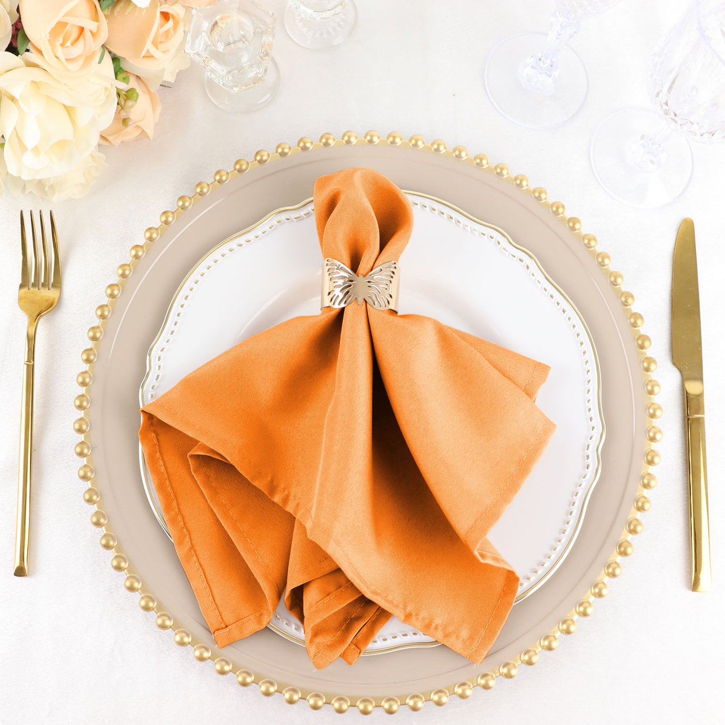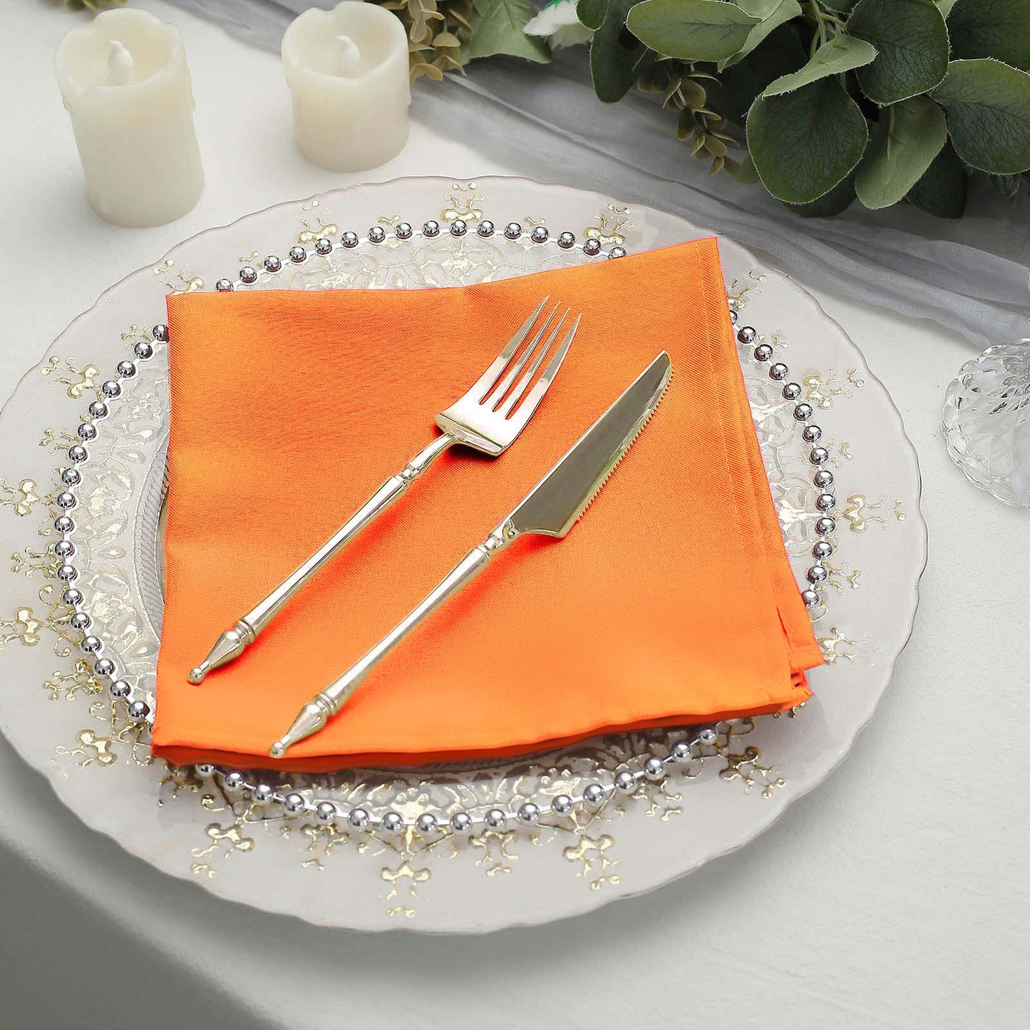 For a more elegant setting, use these napkins alongside gold or silver accents. Charger plates and metallic cutlery can elevate the overall look. The bright orange will stand out beautifully against these sophisticated elements.