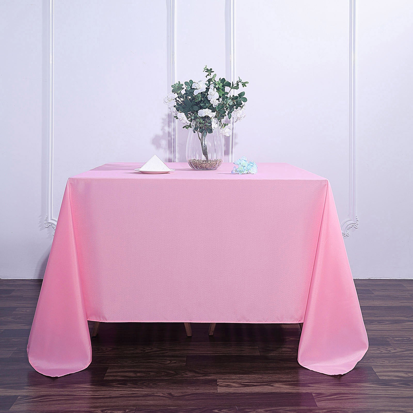 Polyester tablecloths, like our Pink Square option, offer numerous advantages for event planning. They are known for their durability and resilience, making them an excellent choice for both indoor and outdoor events. Unlike other materials, polyester resists fading and wear, ensuring your tables always look their best.