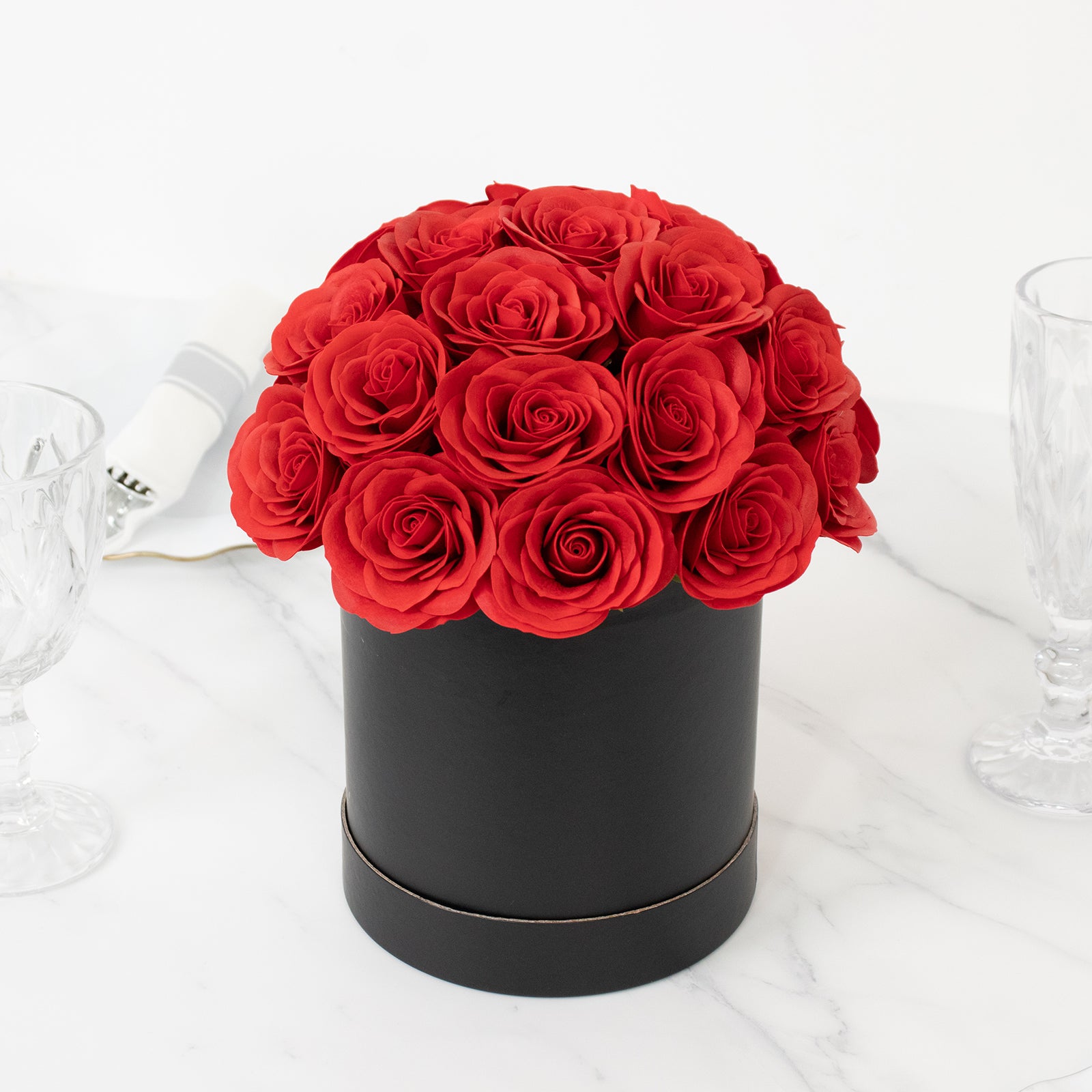 Soap rose bouquets are an inspired way to blend sophistication and practicality in your event décor. These artificial roses are perfect for creating a romantic, lasting centerpiece that never wilts. Display them atop classic Table Runners or place them within mirrored trays to add dimension and polish to your setup. Their deep red hue complements neutral tones and metallic accents, while the unscented feature ensures everyone can enjoy their beauty without distraction. From Valentine’s Day celebrations to wedding receptions, this decorative rose box brings warmth and refinement to any event.