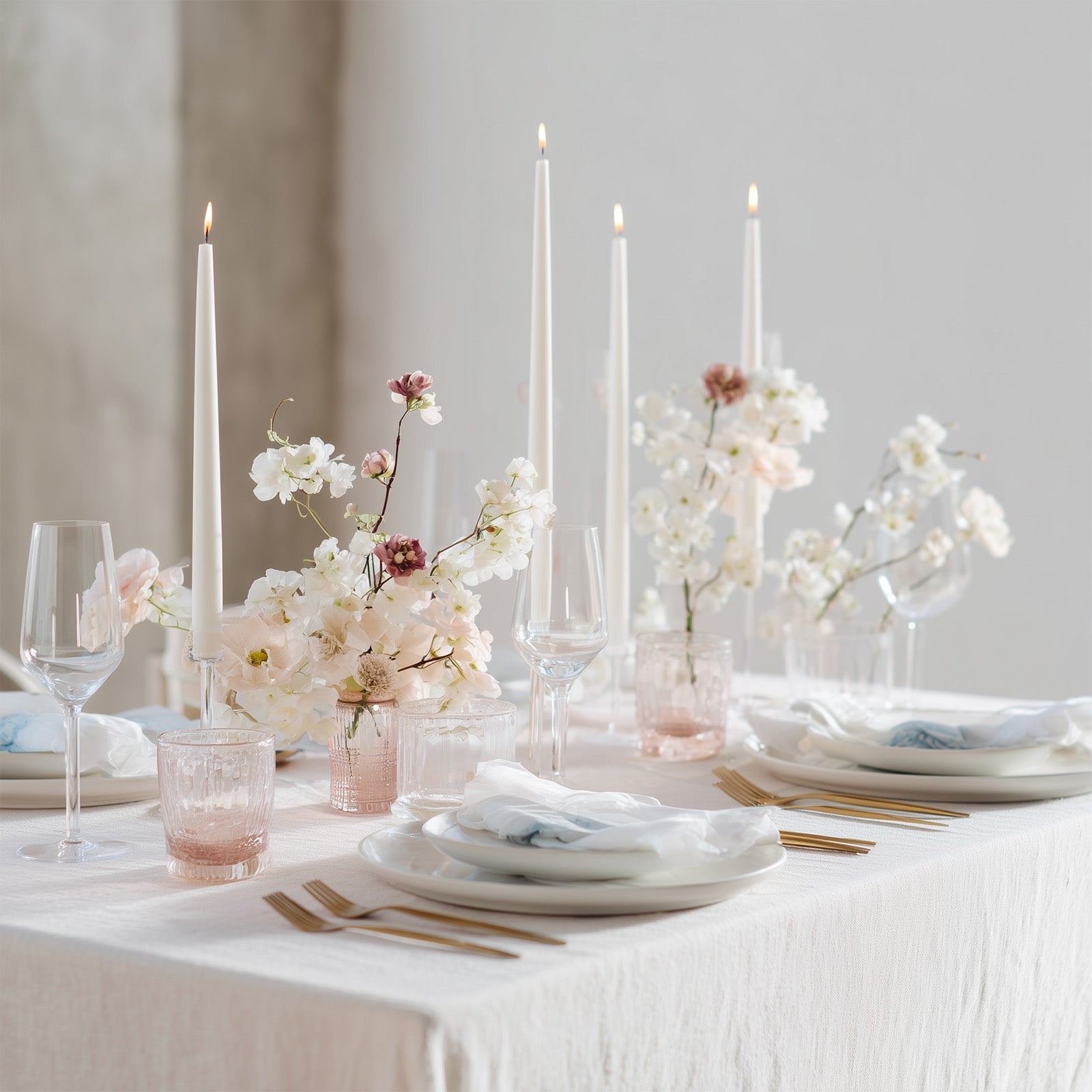 White taper candles are the heart of classic event styling. Arrange them among lush Artificial Flowers and Greenery or use them to accent floral centerpieces for weddings and formal dinners. They complement both rustic and modern aesthetics effortlessly. Add subtle Decorative Lights to enhance the glow and create a dreamlike effect that transforms your venue into a scene of pure enchantment.