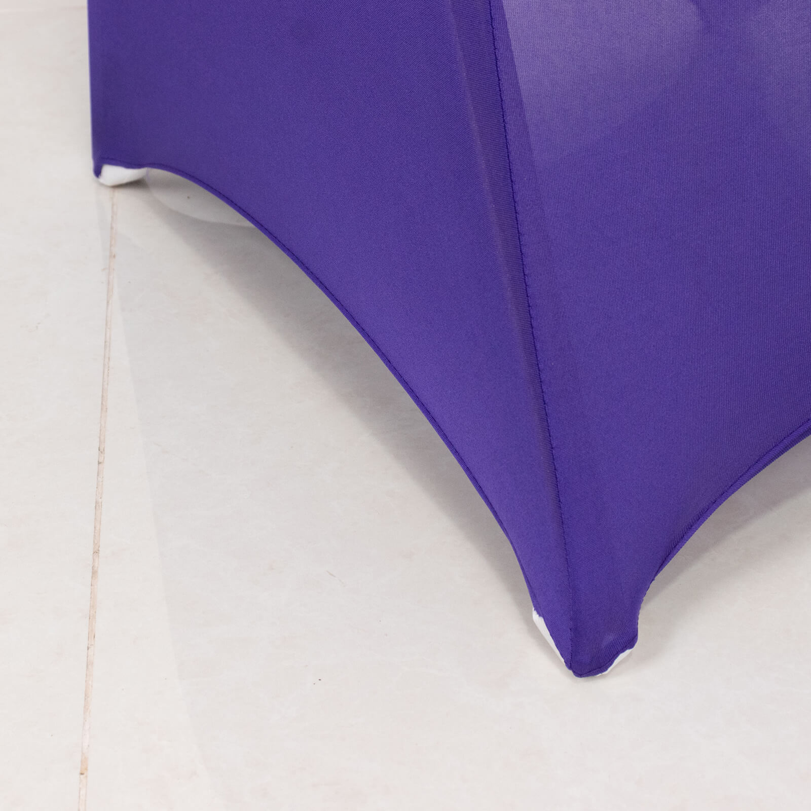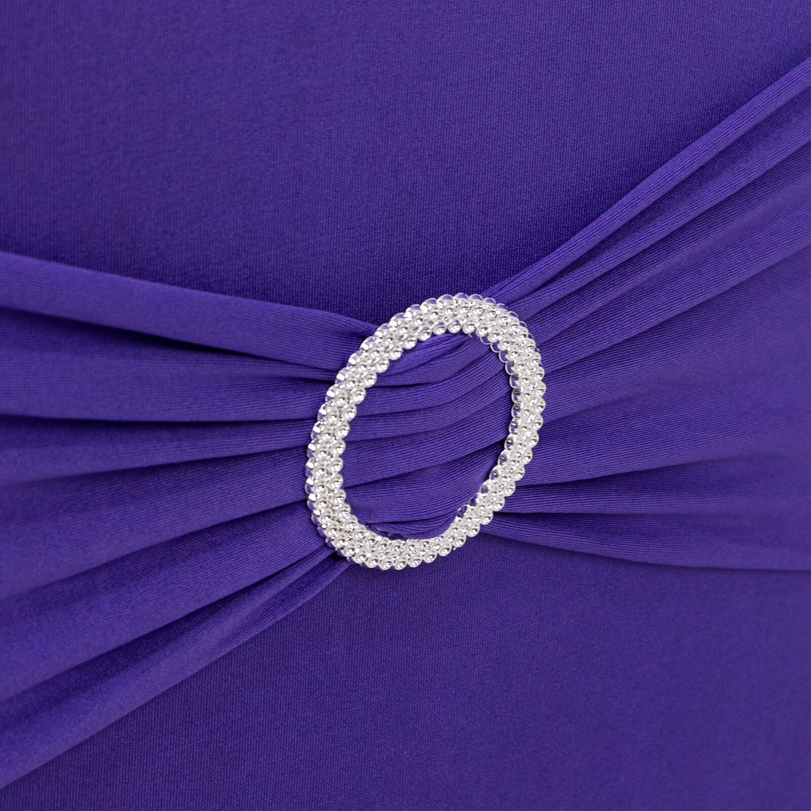 Purple Spandex Banquet Chair Cover with Silver Rhinestone Buckled Sash Band, Stretched Fitted Slip On Chair Cover