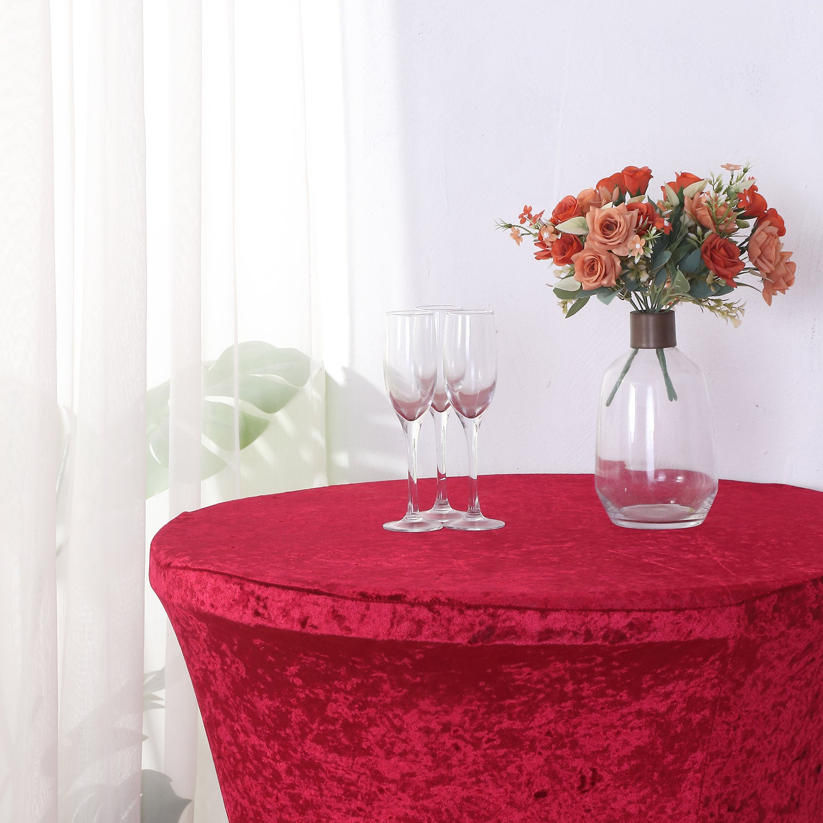 Crushed Velvet Spandex 30" Round Cocktail Table Cover Red Smooth Highboy Tablecloth