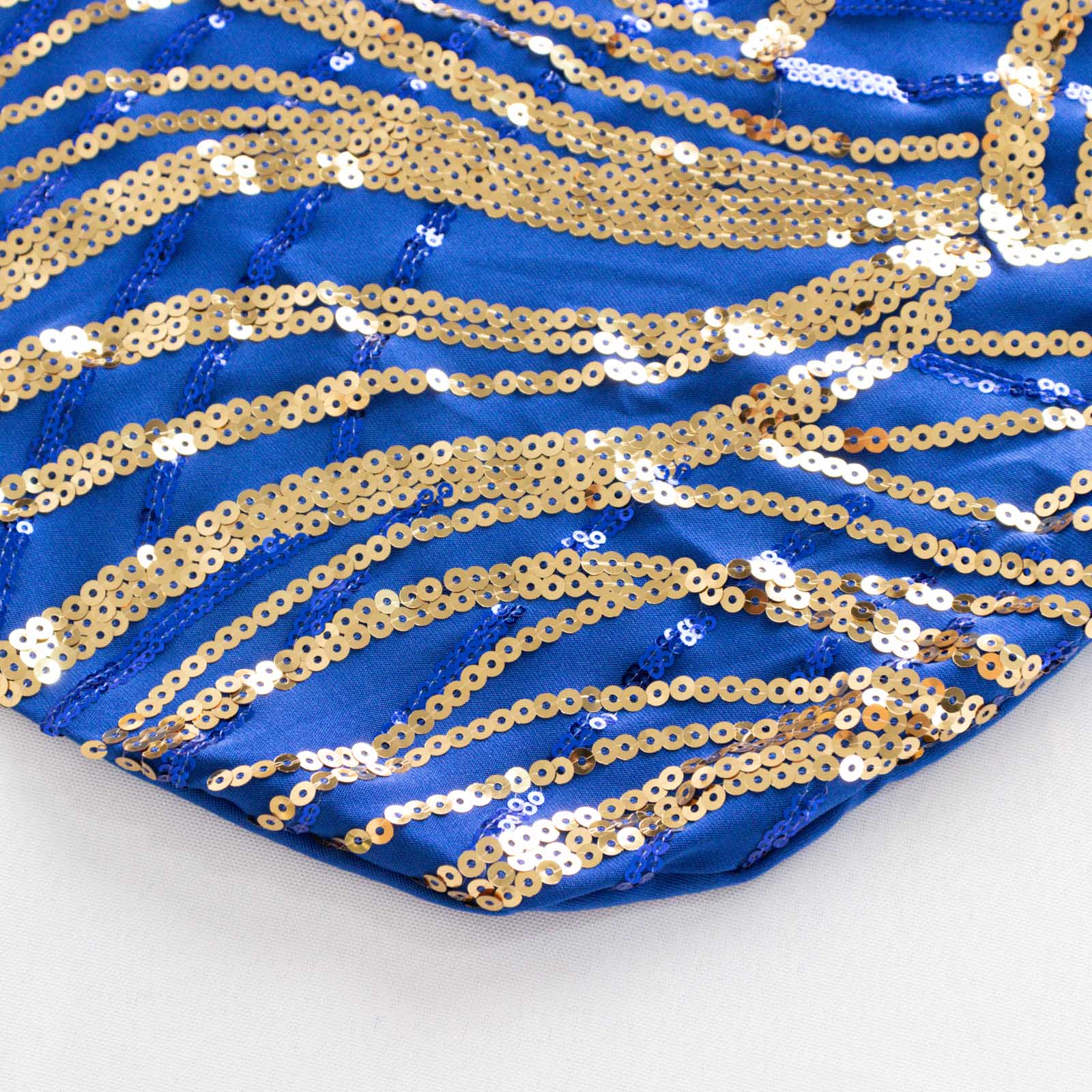 Royal Blue Gold Spandex Fitted Banquet Chair Cover With Wave Embroidered Sequins