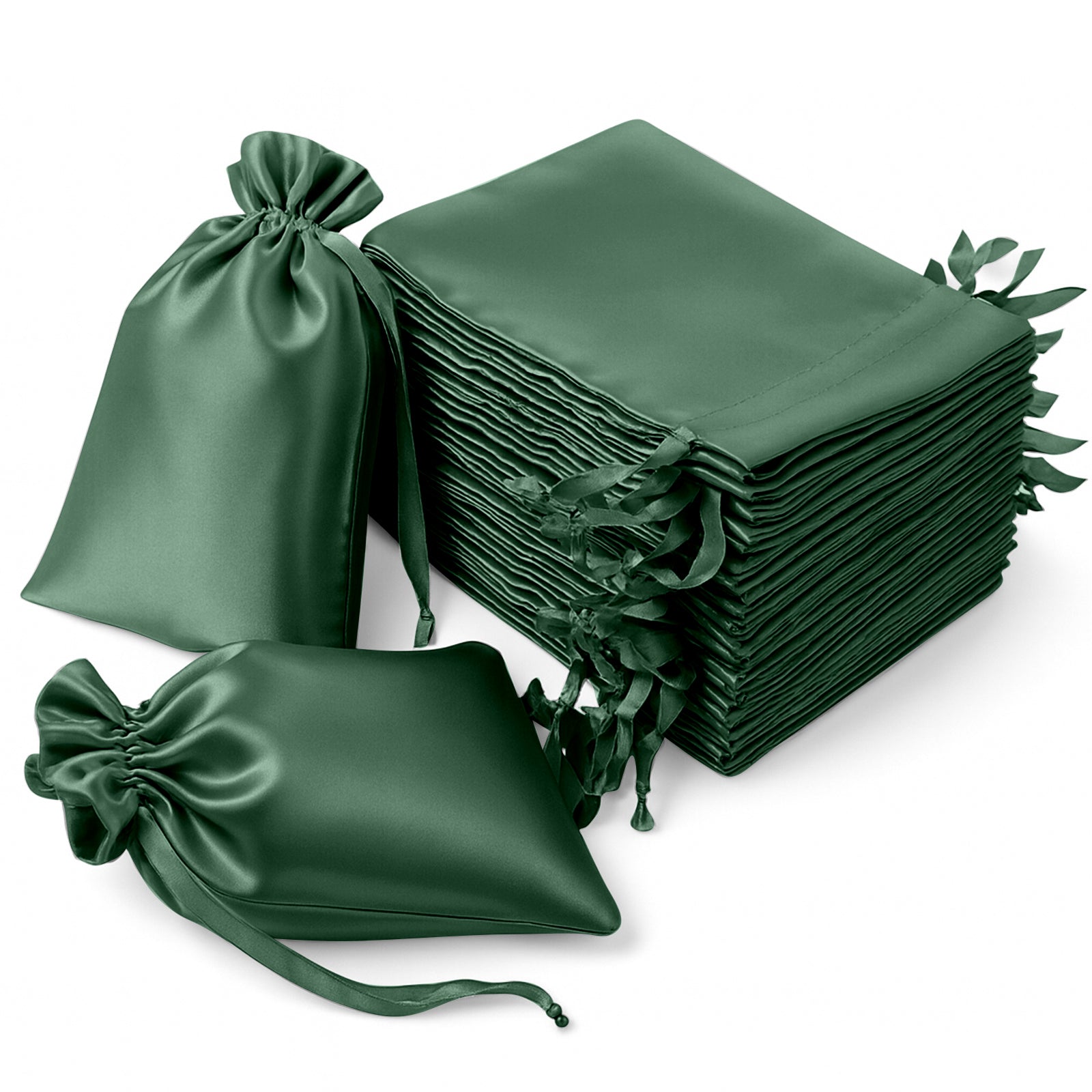 Hunter Emerald Green Satin Favor Bags for Wedding and Party Gifts