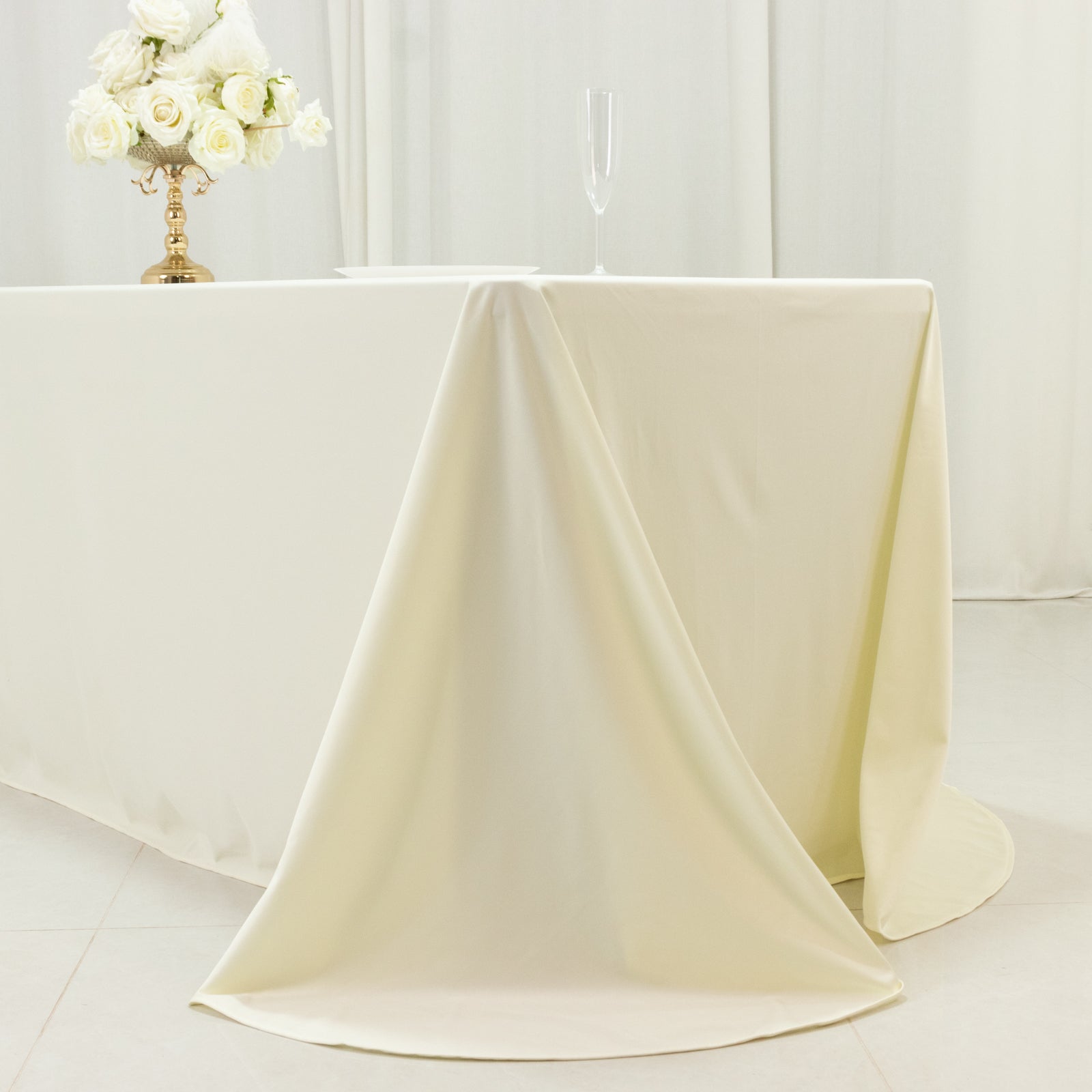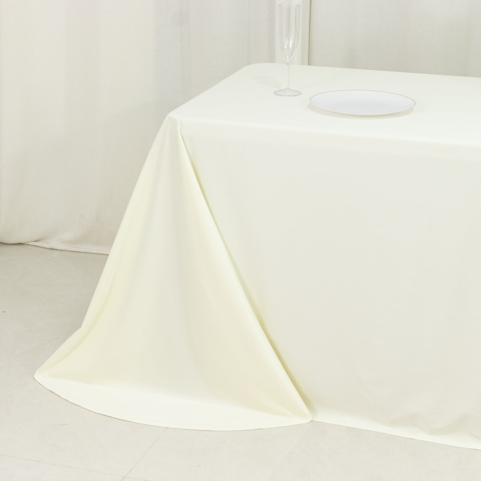 Scuba Rectangular 90"x156" Tablecloth Ivory with Rounded Corners – Seamless, Wrinkle Free & Stain Resistant Table Cover