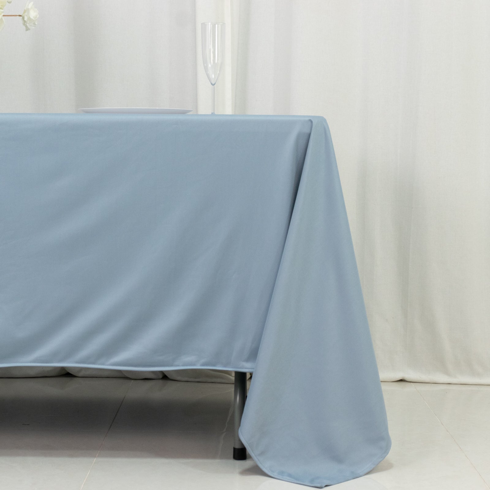For style-conscious planners, the real benefit of scuba polyester lies in its versatility. The dusty blue shade is perfect for spring and summer gatherings but neutral enough to adapt to cooler tones for winter affairs. Mix and match with satin Napkins or bold Charger Plates to create an elevated table setting. You can even coordinate with neutral Chair Covers to complete the look. Whether you're planning a one-time event or curating décor for a rental inventory, scuba rectangular tablecloths make the process streamlined and visually cohesive.