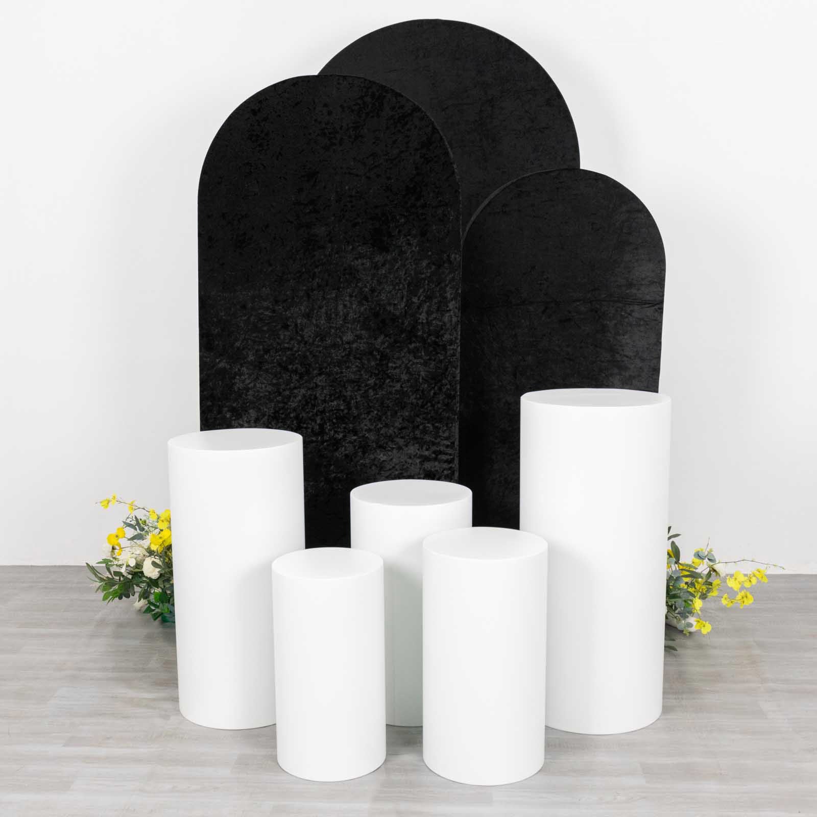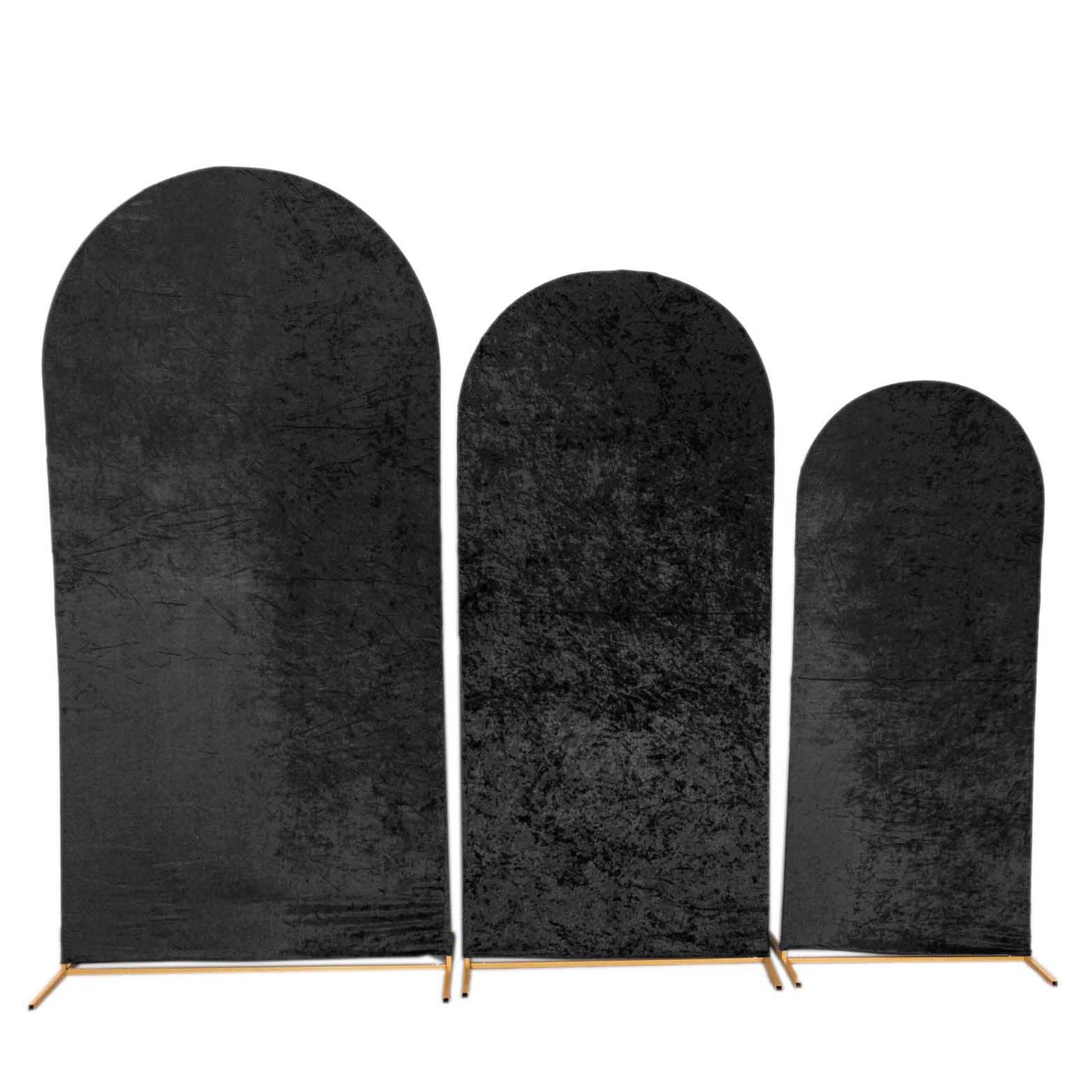 Set of 3 Black Crushed Velvet Chiara Backdrop Stand Covers For Round Top Wedding Arches - 5ft, 6ft, 7ft