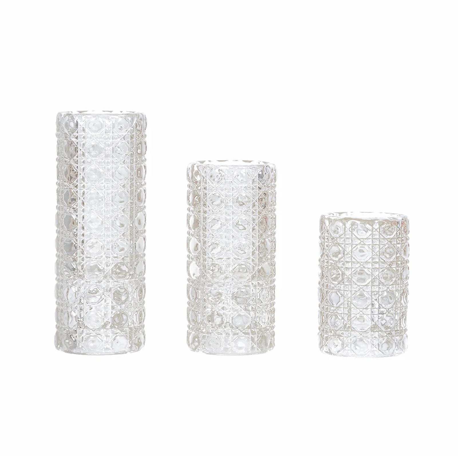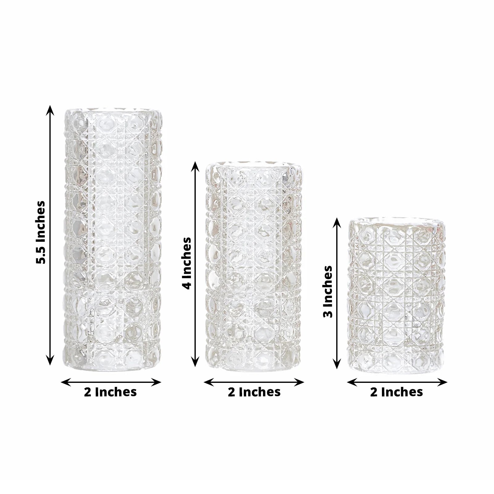 Set of 3 Clear Glass Taper Candle Stick Stand with Gemstone Pattern, Dual Sided Crystal Cylinder Tealight Candle Holders - 3",4",5.5"
