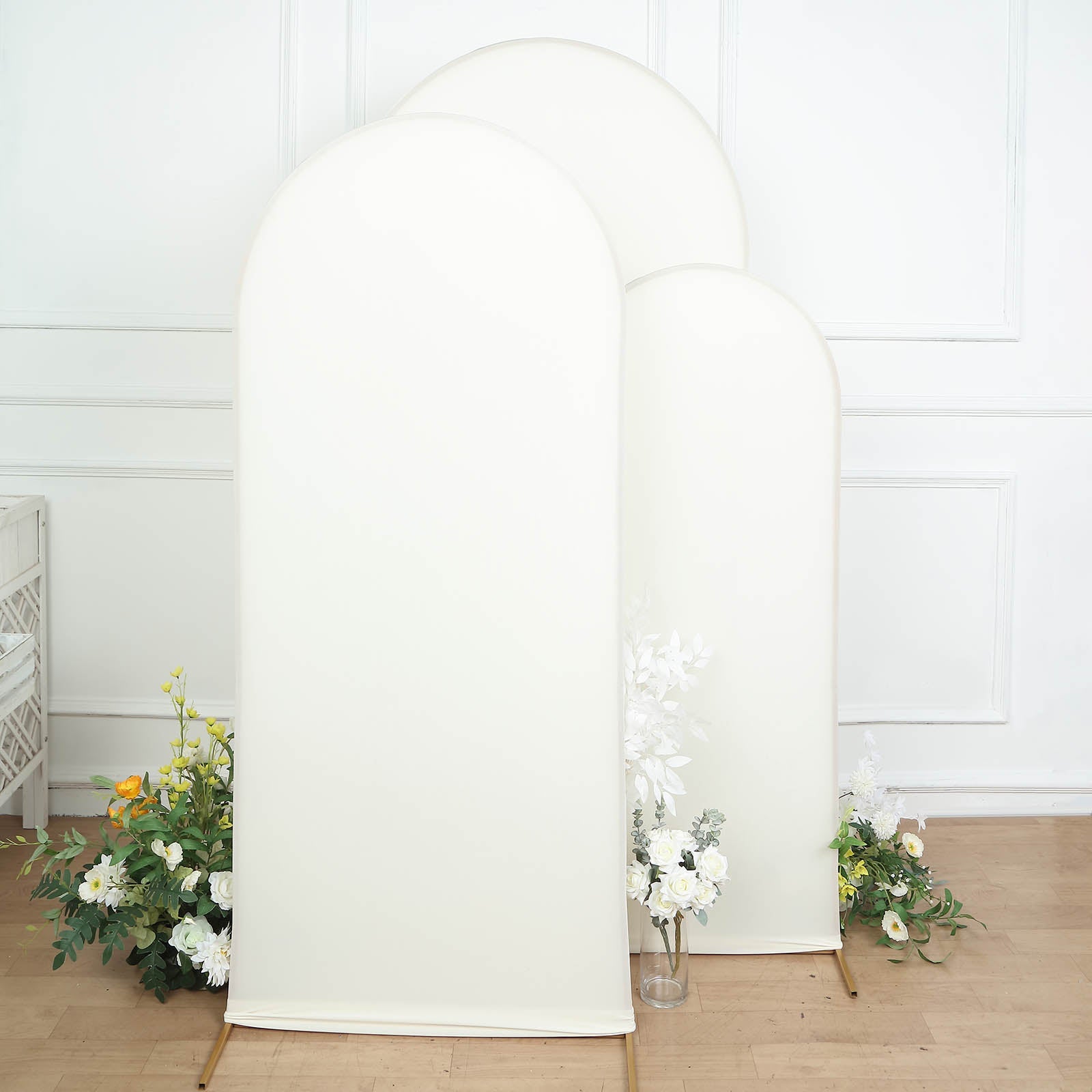 Set of 3 | Matte Ivory Spandex Fitted Wedding Arch Covers For Round Top Chiara Backdrop Stands - 5ft, 6ft, 7ft