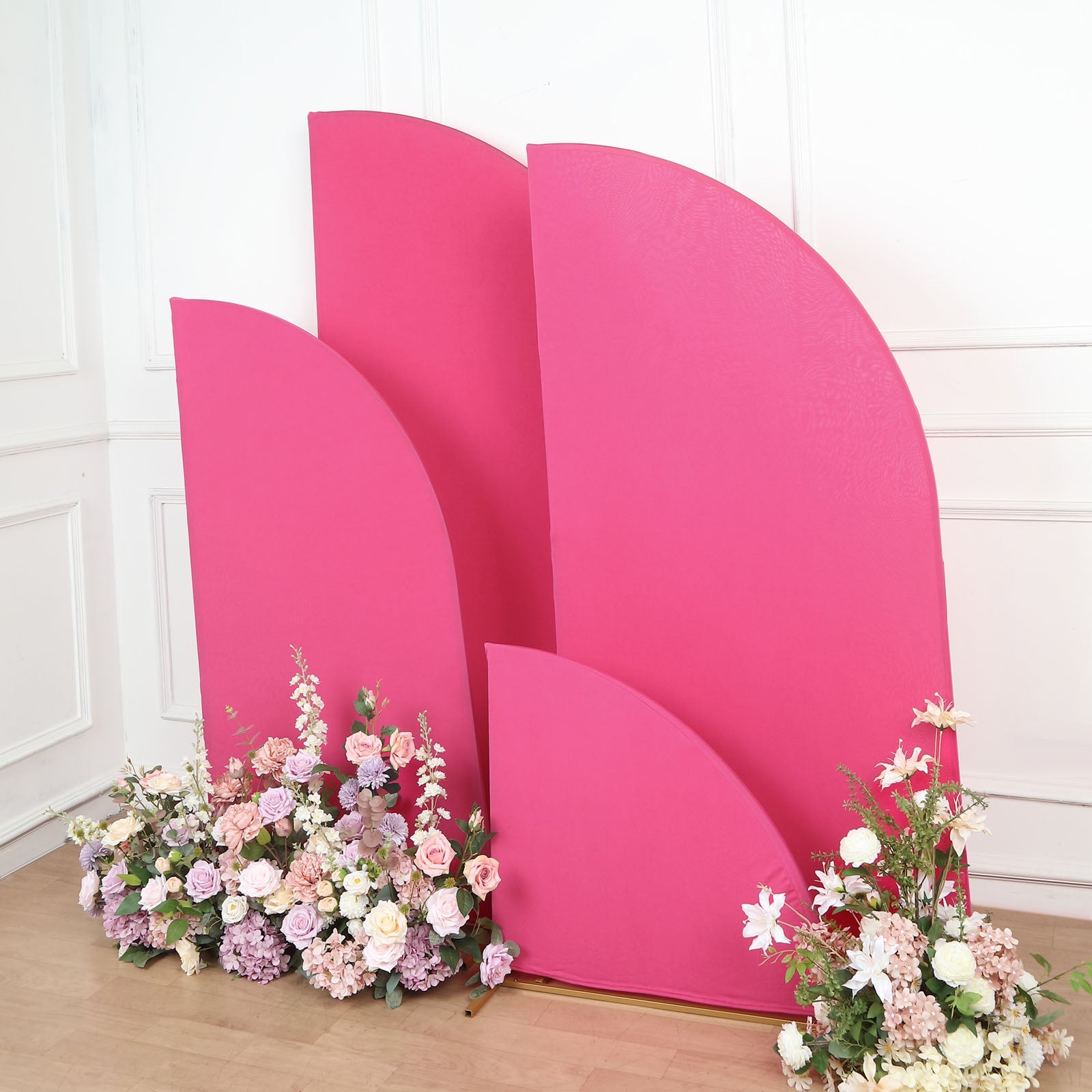 Set of 4 | Matte Fuchsia Spandex Half Moon Chiara Backdrop Stand Covers, Custom Fitted Wedding Arch Covers - 2.5ft,5ft,6ft,7ft