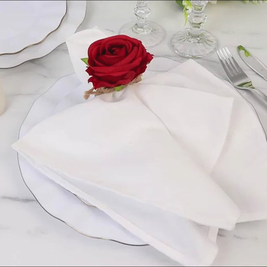 Whether you’re celebrating a special occasion or simply setting a beautiful table for everyday meals, these red silk rose napkin rings are a versatile choice. The 4-inch size is perfect for use with most napkin types, and the rustic, boho design complements a wide range of table settings. These napkin rings are ideal for casual get-togethers, weddings, or formal dinners.