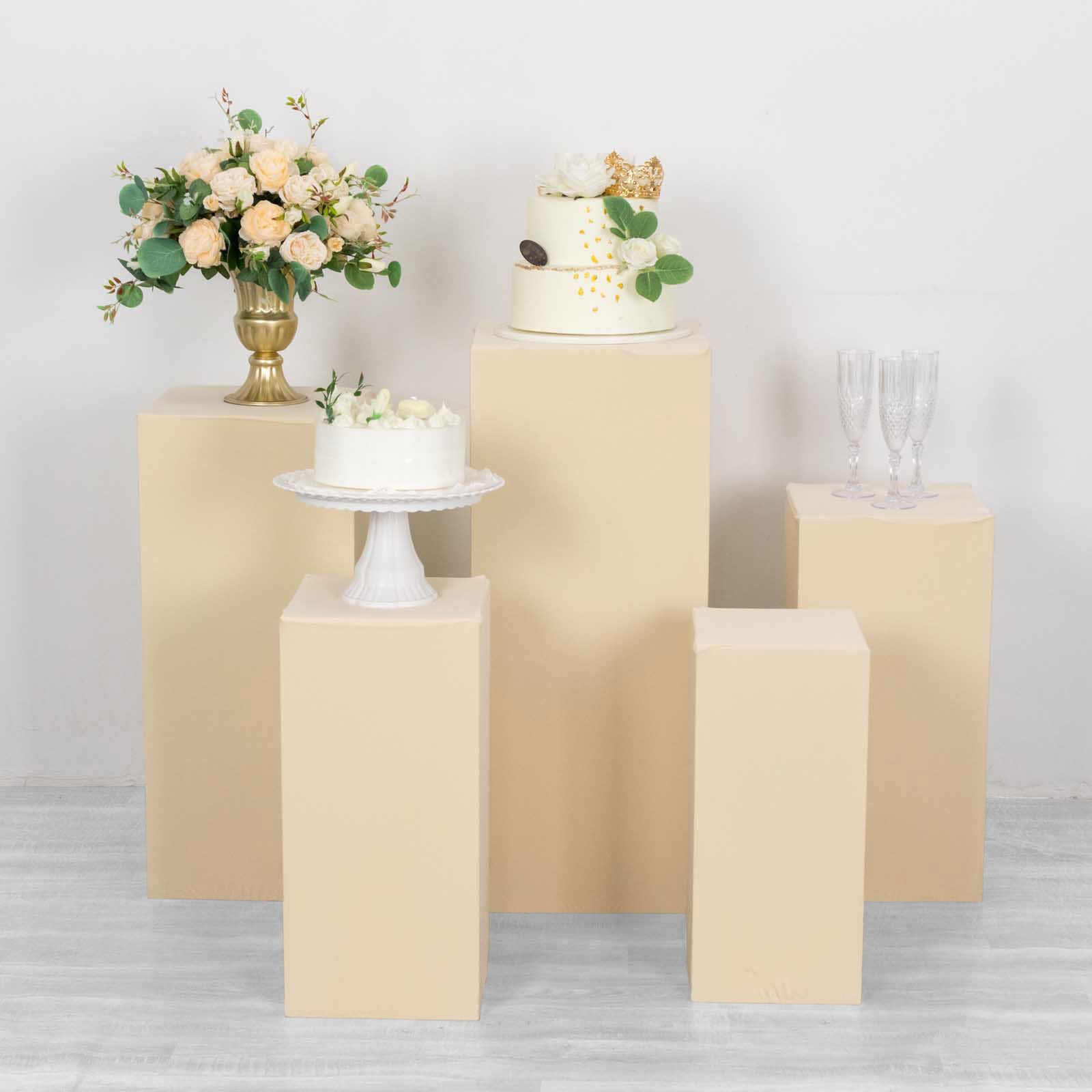Set of 5 Beige Spandex Rectangle Pedestal Stand Covers, Stretchable Pillar Prop Covers - 160 GSM