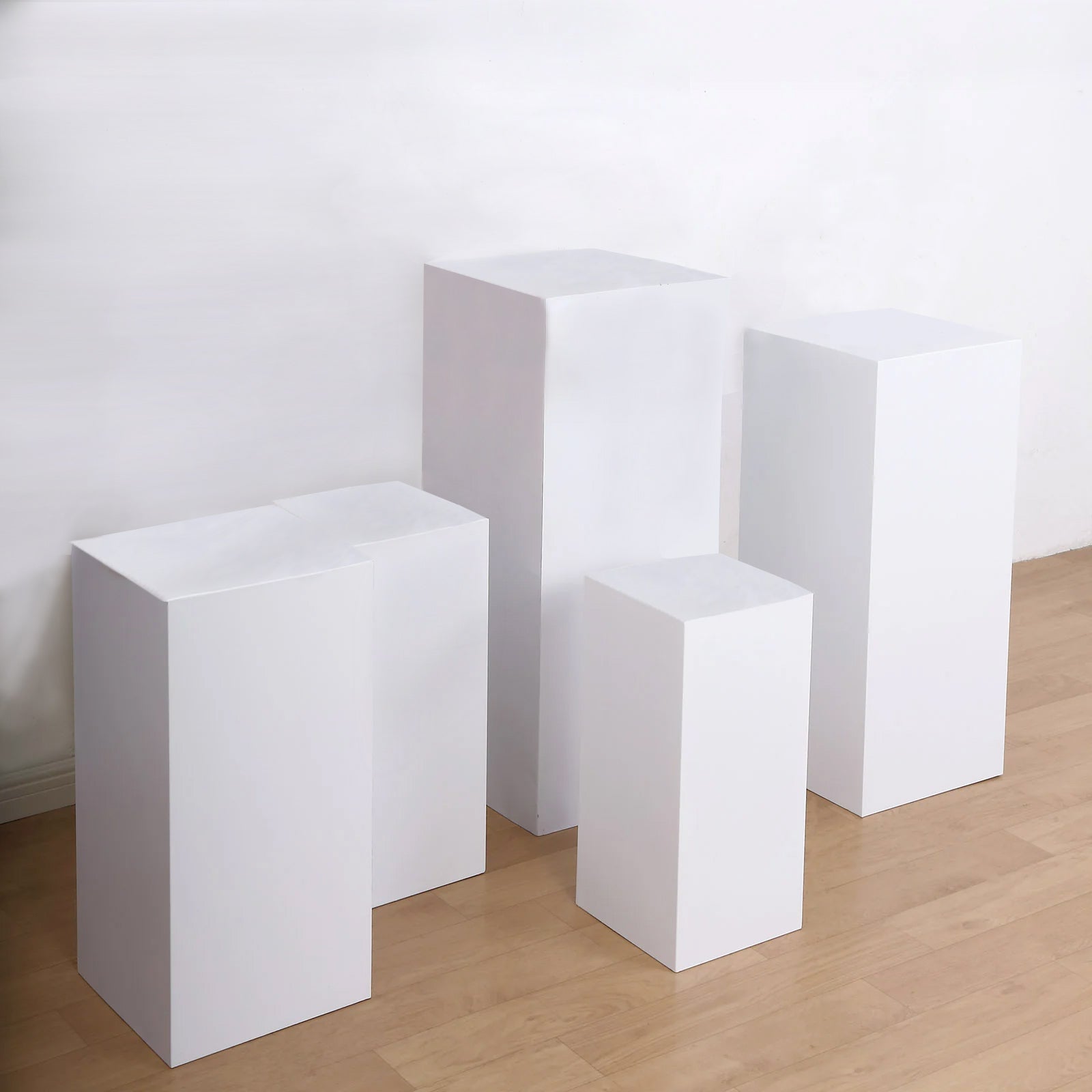 Set of 5 White Metal Rectangular Prop Pedestal Stands Backdrop Decor, Plinth Pillar Display Boxes