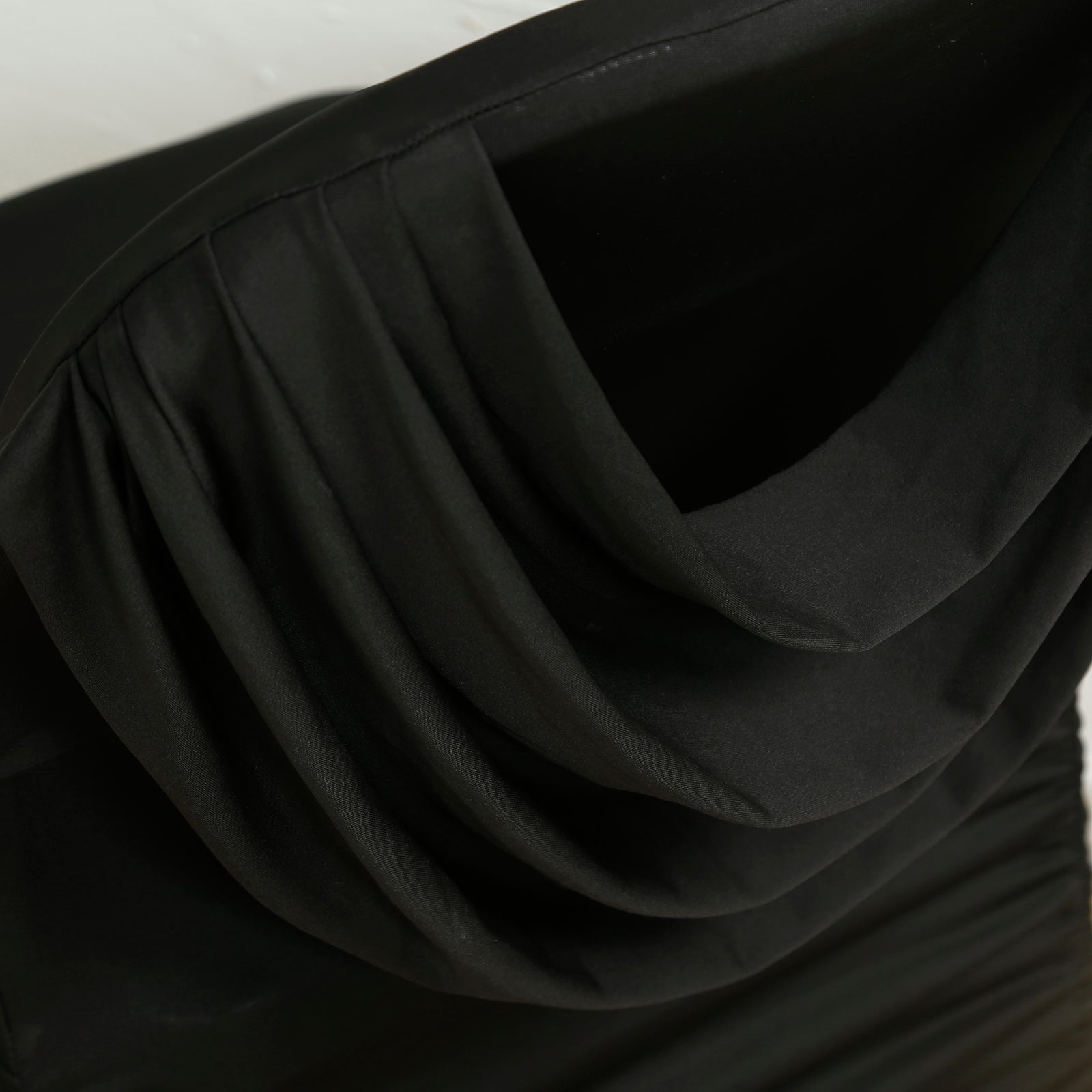 Black Spandex Folding Chair Cover with Ruched Swag Back