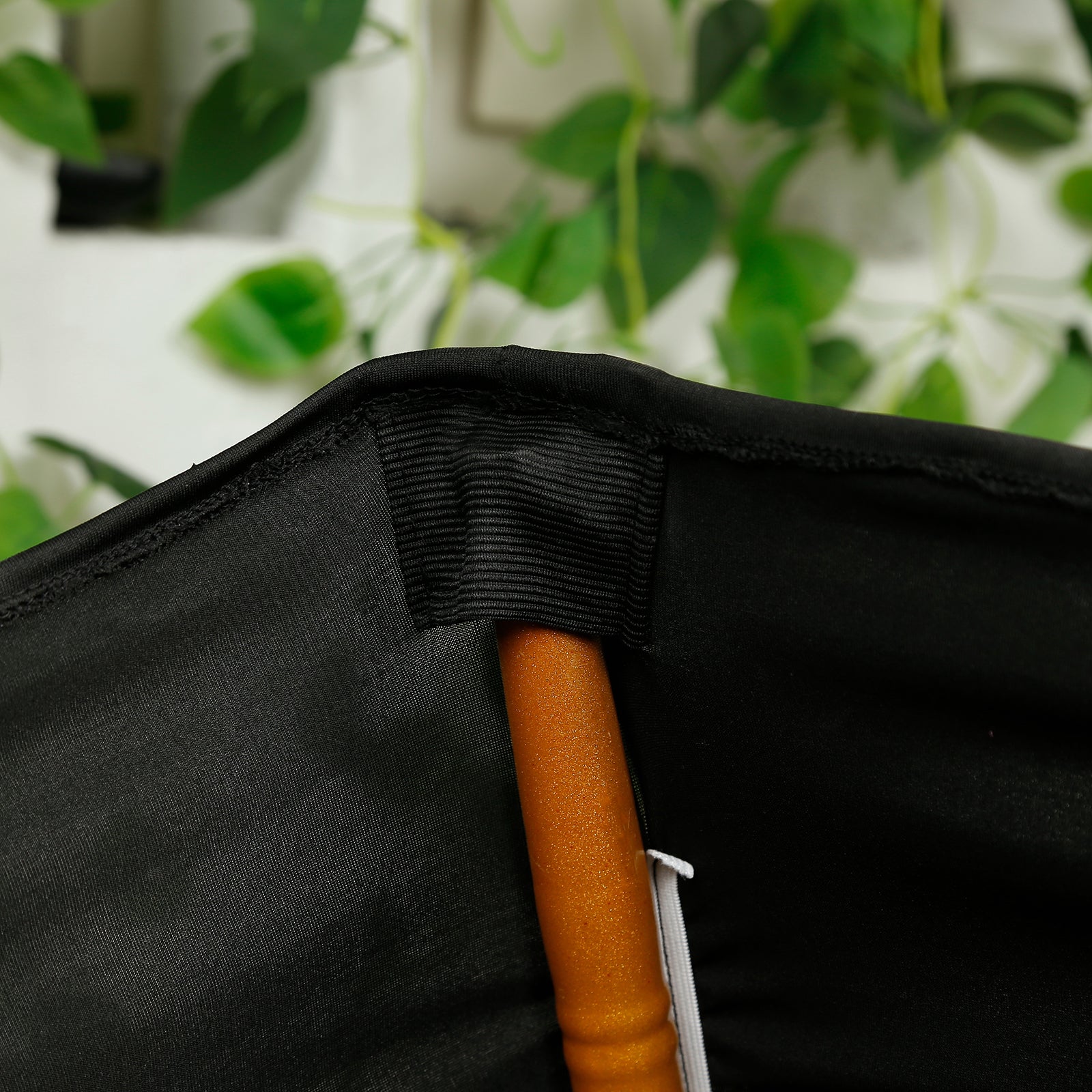 Constructed from durable spandex, this fitted chair cover holds its shape through repeated events while resisting pilling and snags. The deep black hue plays well with any theme—modern monochrome, soft pastels, or glam metallics—and it’s a natural canvas for accessories. Tie on a pop of color with Chair Sashes, clip on florals, or coordinate with signage for a cohesive look from aisle to head table. Imagine your team flipping a multiuse hall between a luncheon and an evening celebration: swap tabletop accents, keep the same stretch chair cover, and you’re ready for the next scene. The ruched chair cover design captures light beautifully in photos while the chair cover with foot pockets keeps everything locked in place—so you can focus on the timeline, not the touch-ups.