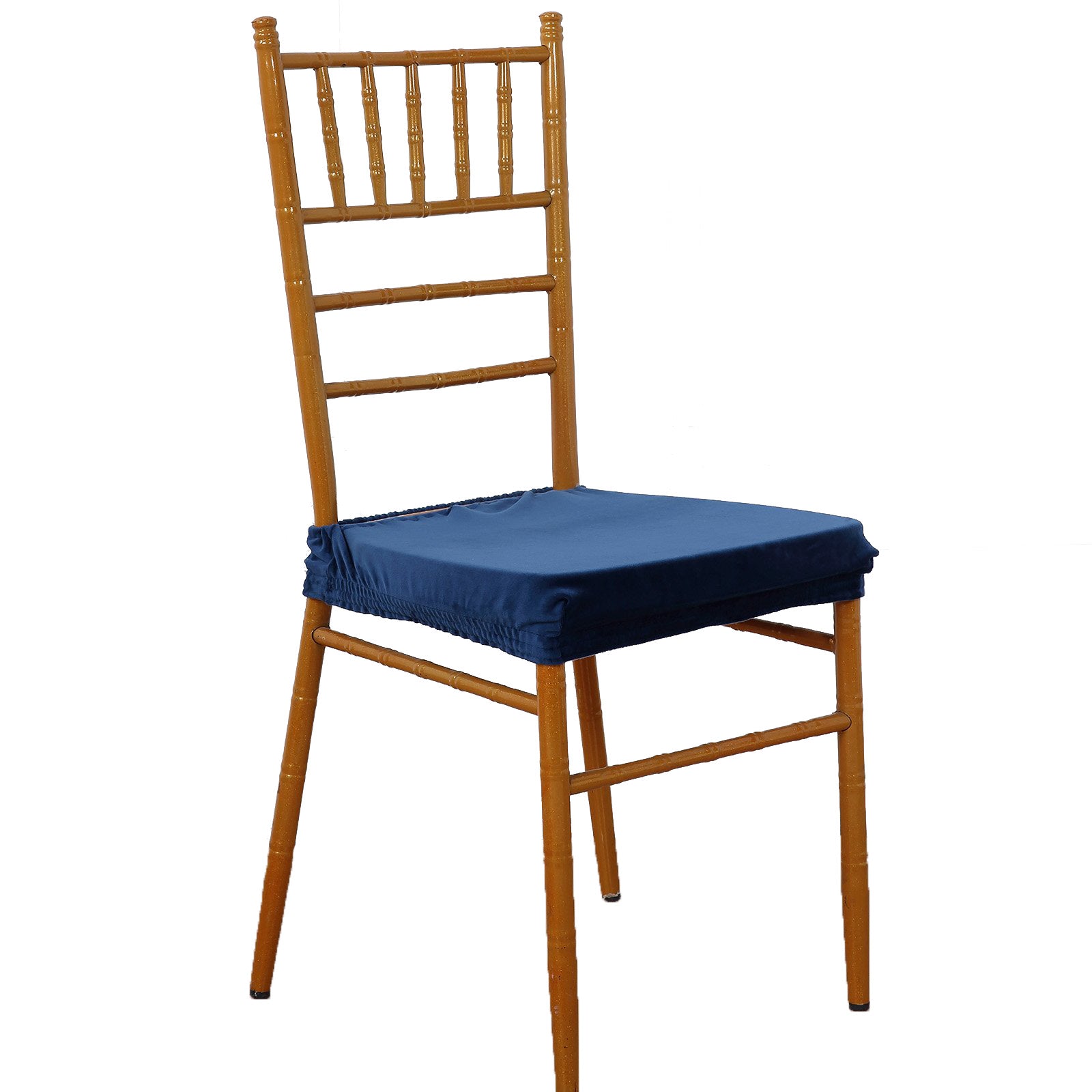 The Stretch Navy Blue Dining Chair Seat Cover features a stretchable design that ensures a snug fit. It can easily adapt to most traditional and contemporary chair styles. This makes installation a breeze, saving you time when preparing for events.