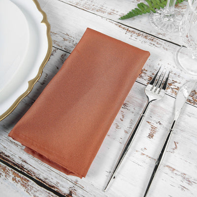 Terracotta (Rust) Cloth Napkins with Hemmed Edges, Reusable Polyester Dinner Linen Napkins - 17"x17"