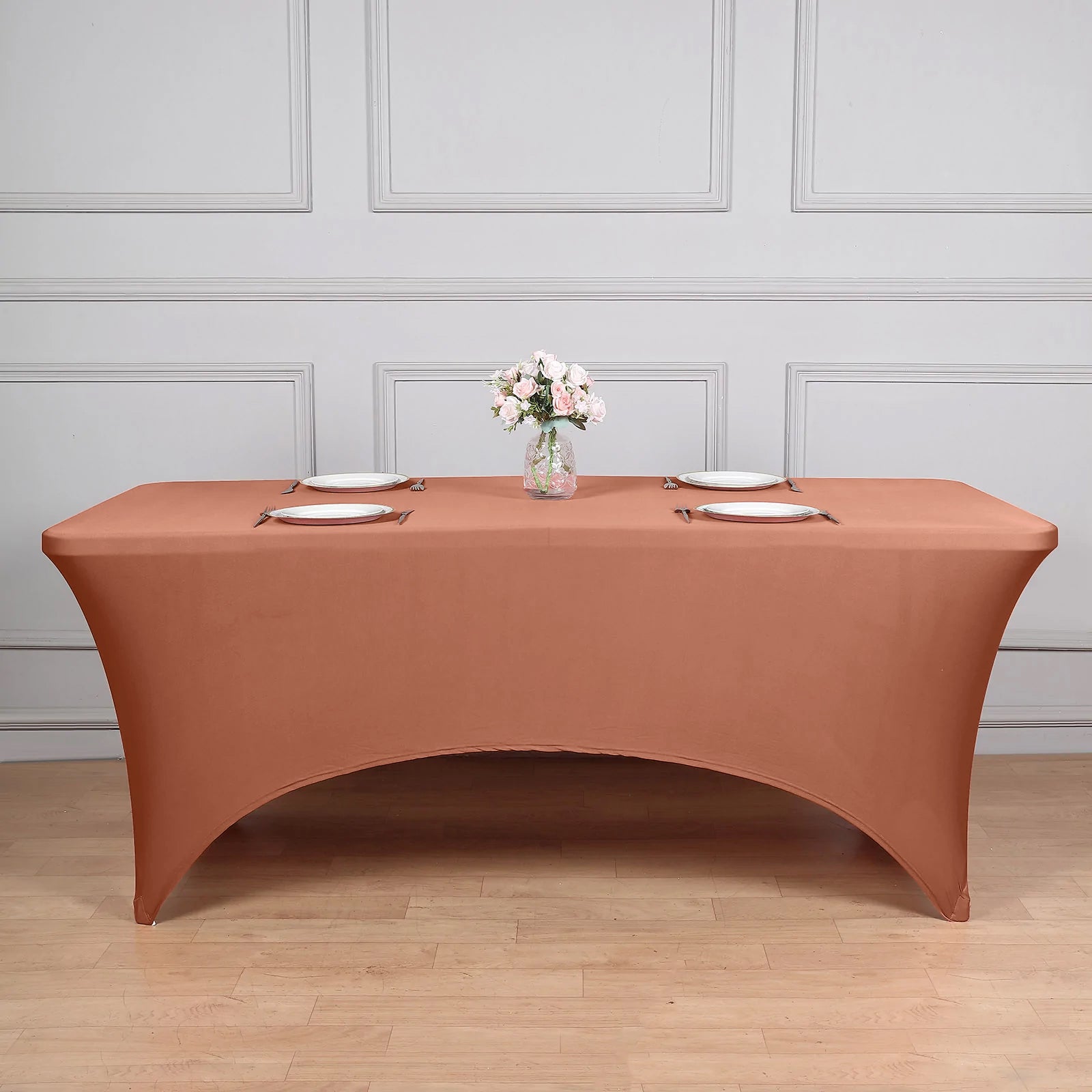 Terracotta (Rust) Stretch Spandex Rectangle Tablecloth 6ft Wrinkle Free Fitted Table Cover for 72"x30" Tables