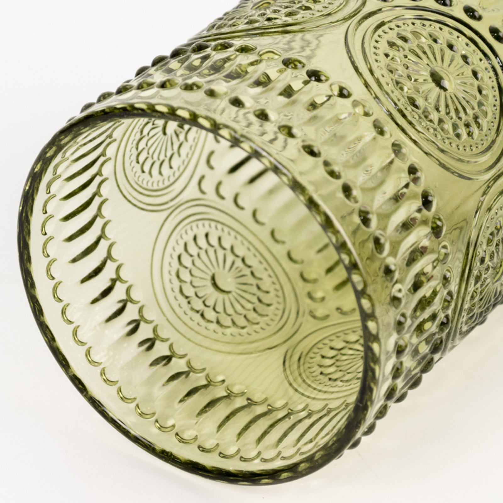 Vintage Embossed Drinking Glasses, Highball Cocktail Glass Tumblers with Textured Floral Pattern - Dusty Sage Green, 14oz, 6-Pack