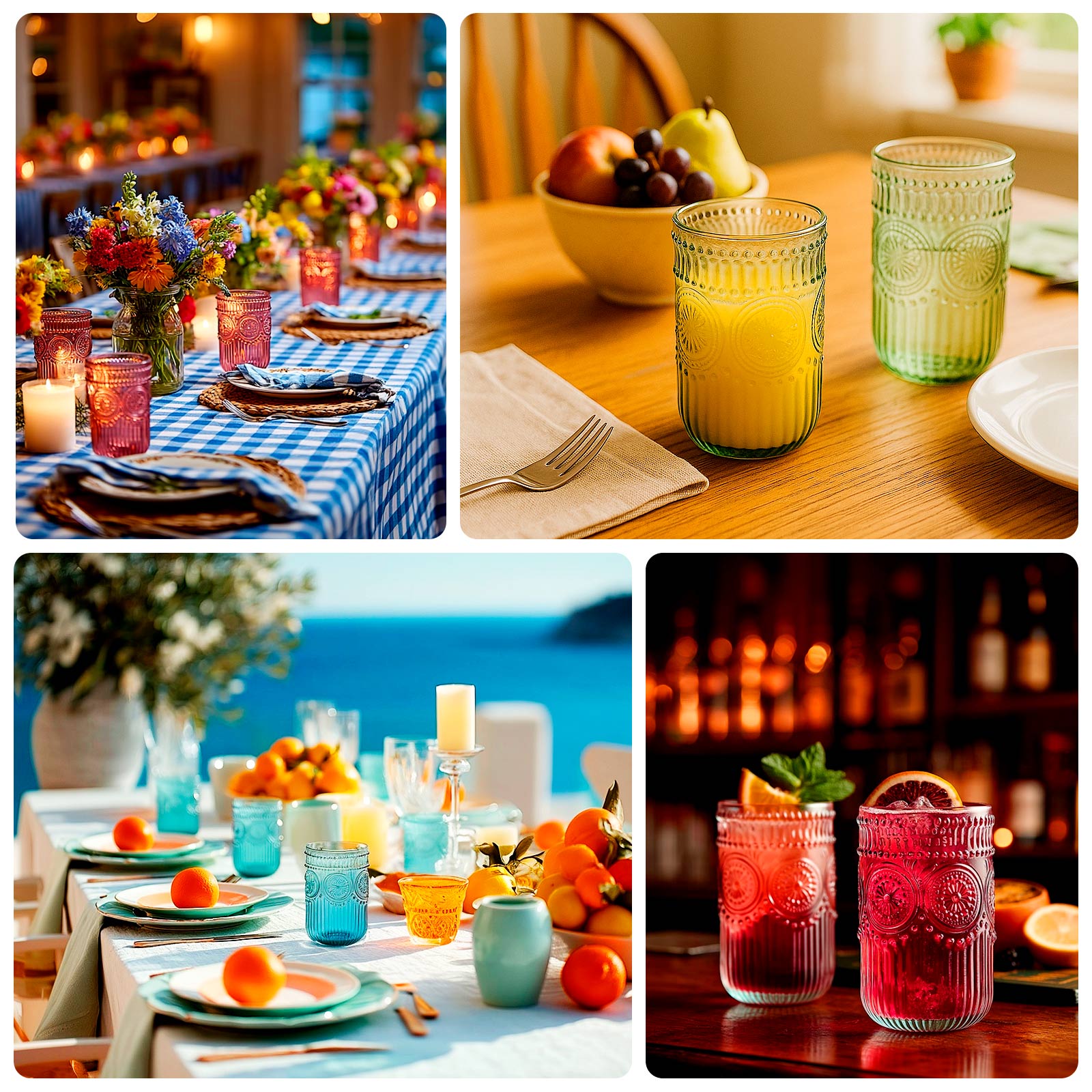 The beauty of vintage-inspired glassware is that it can easily be incorporated into a wide variety of event themes. From rustic farmhouse weddings to opulent garden parties, these tumblers complement a range of décor choices, such as jute burlap and lace tablecloths or organza table runners. This flexibility makes them an excellent choice for event planners who want to create a cohesive look without being locked into one specific style. The timeless design ensures they’ll remain in style for years, making them a great investment for future events.