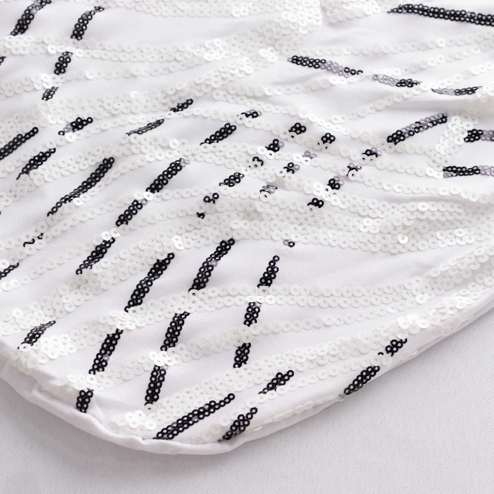 Experience the allure of our White Black Spandex Fitted Banquet Chair Cover. This piece features stunning wave embroidered sequins that elevate any event. The intricate design catches the light beautifully, creating a dazzling effect.