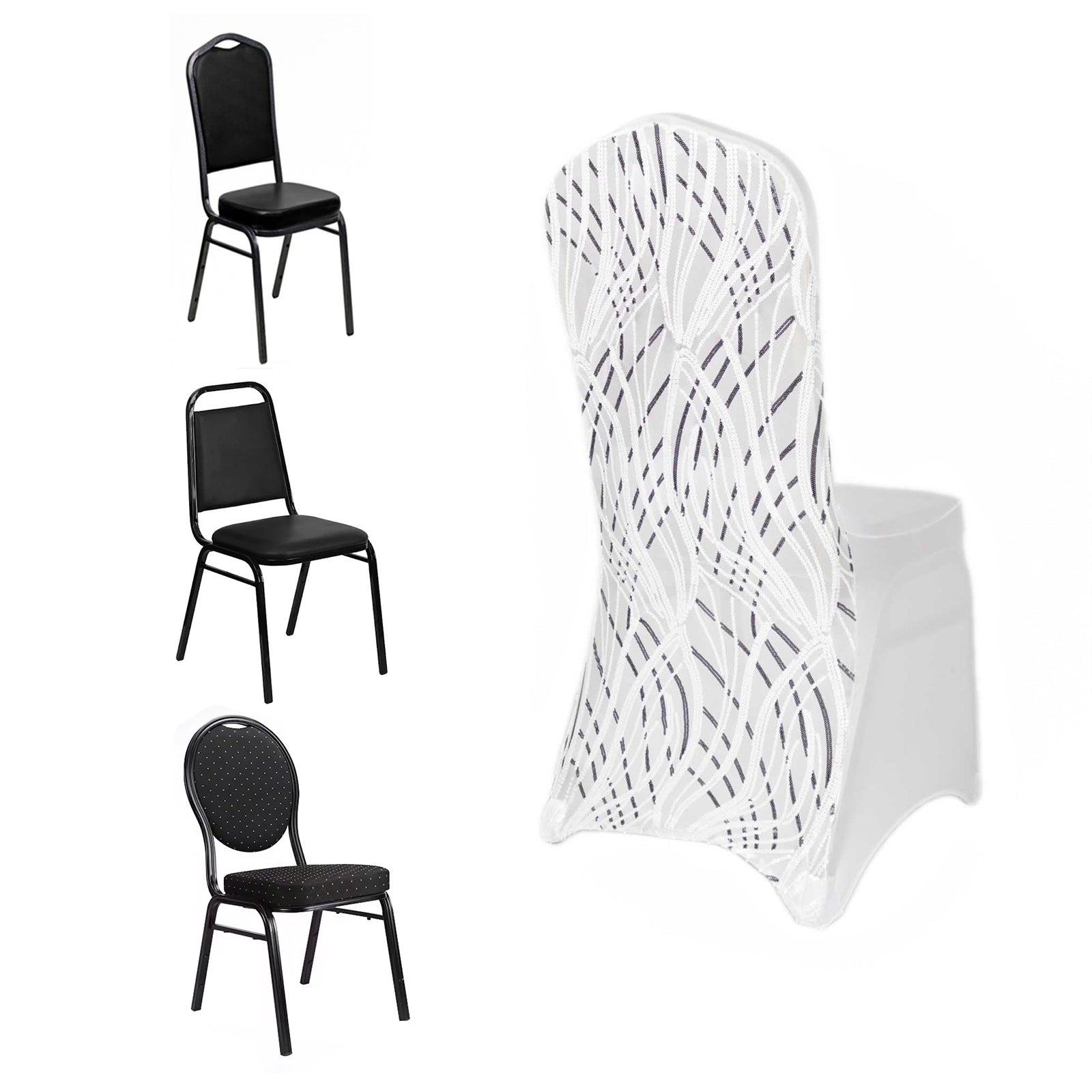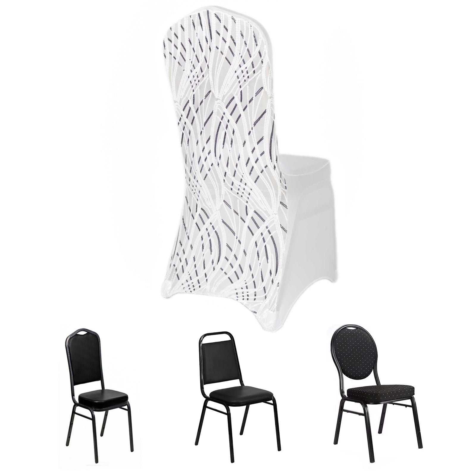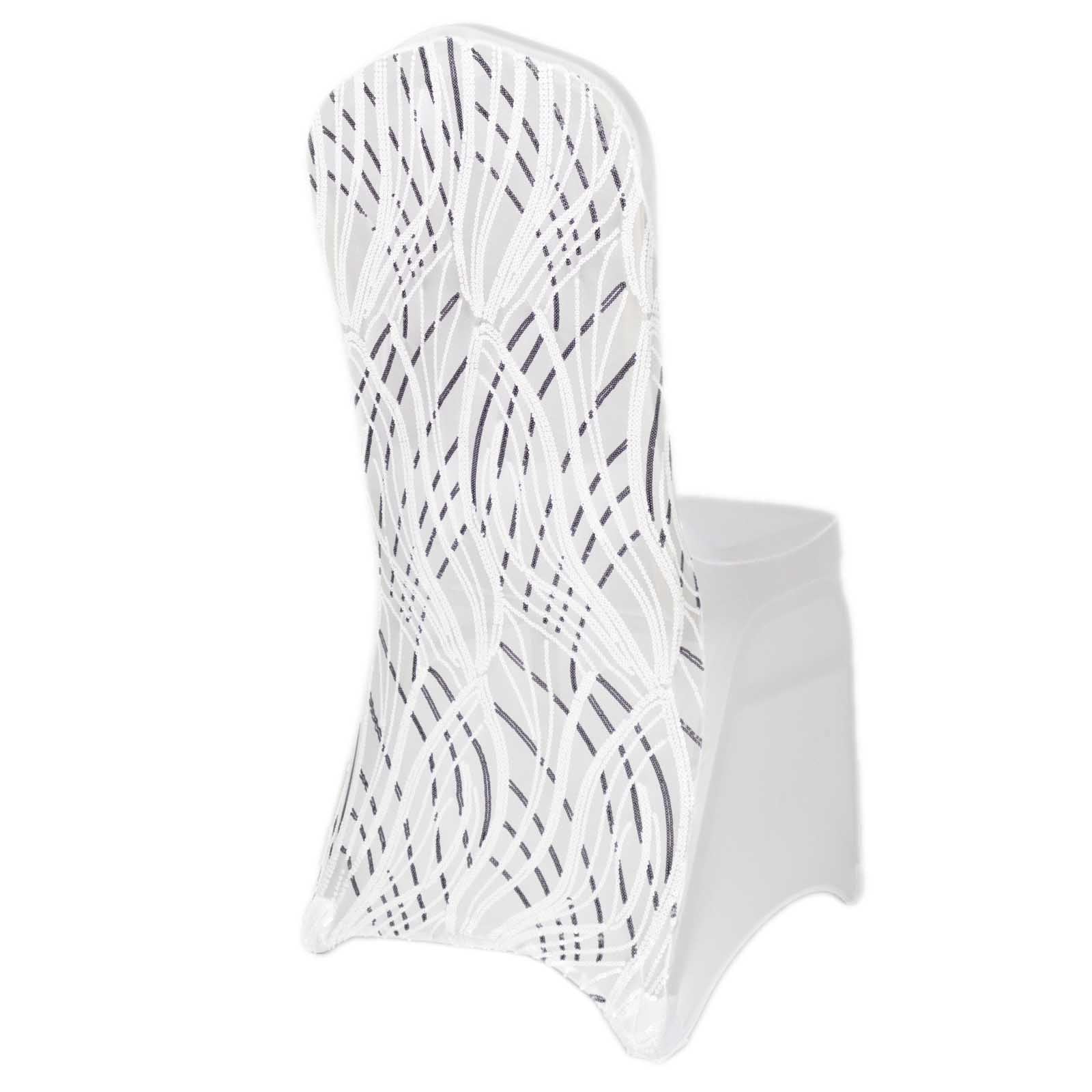 White Black Spandex Fitted Banquet Chair Cover With Wave Embroidered Sequins