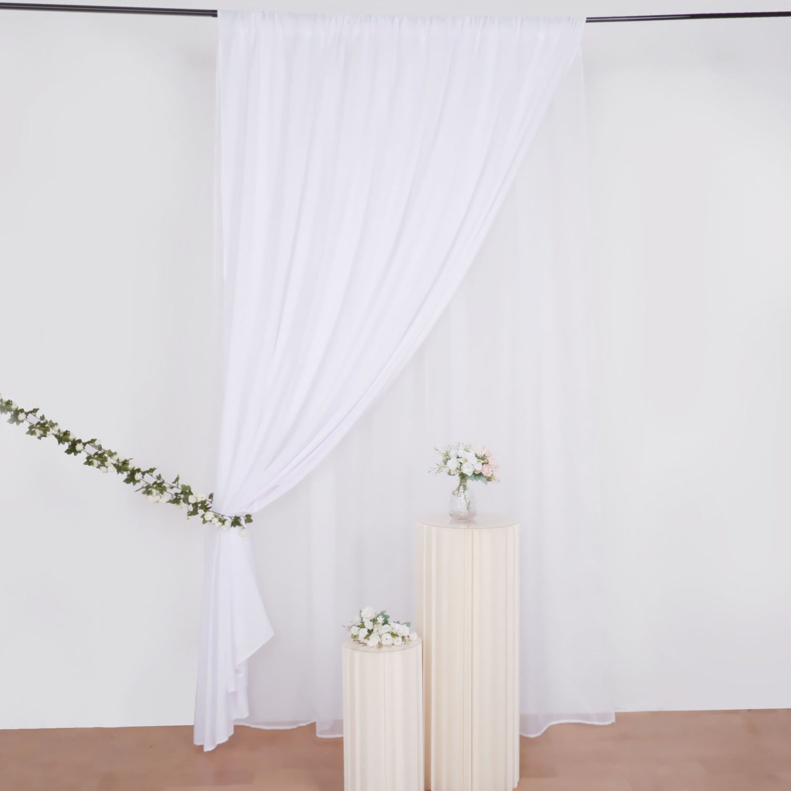 White Chiffon Polyester Event Curtain Drapes, Dual Layer Divider Backdrop Curtain Panels with Rod Pockets - 10ftx10ft