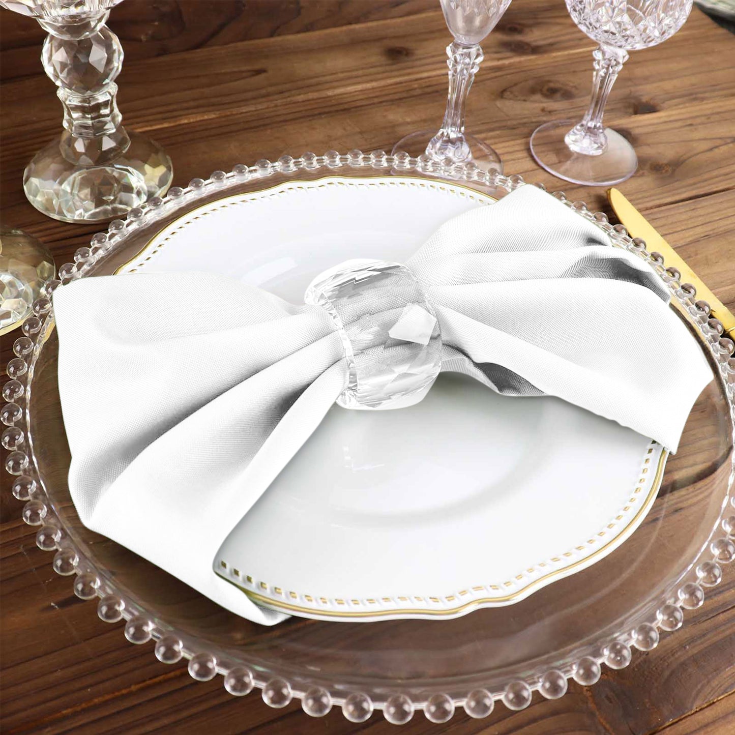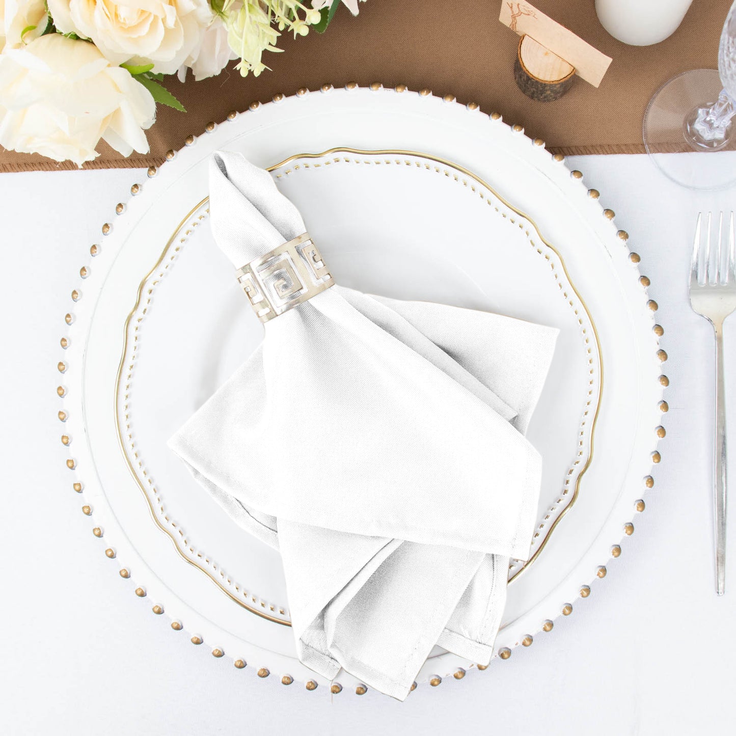 White Cloth Napkins with Hemmed Edges, Reusable Polyester Dinner Linen Napkins - 17"x17"