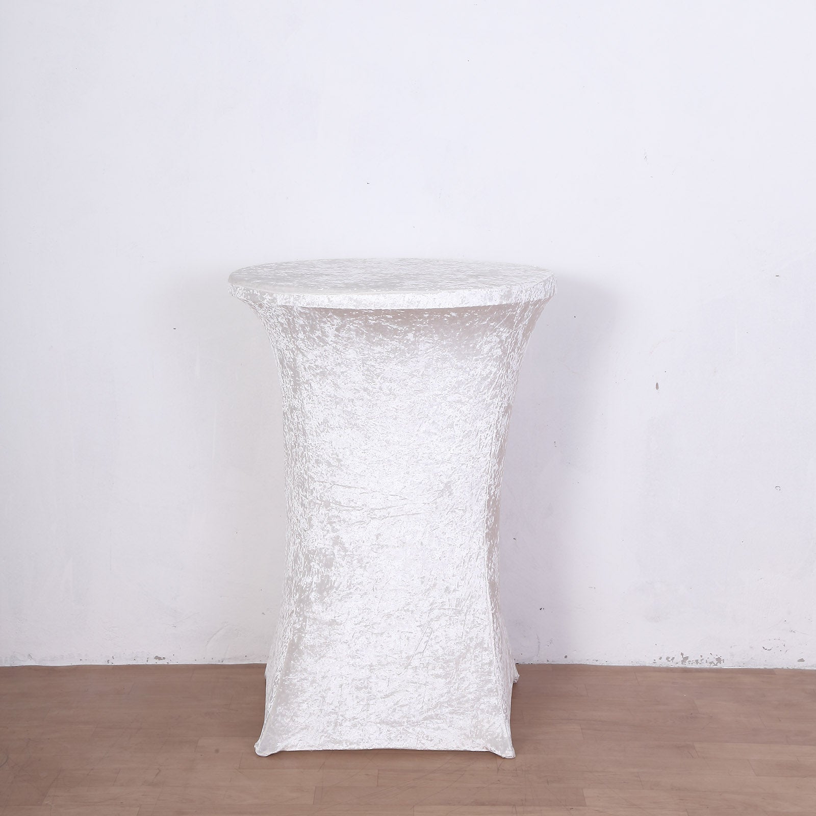 Crushed Velvet Spandex 30" Round Cocktail Table Cover White Smooth Highboy Tablecloth