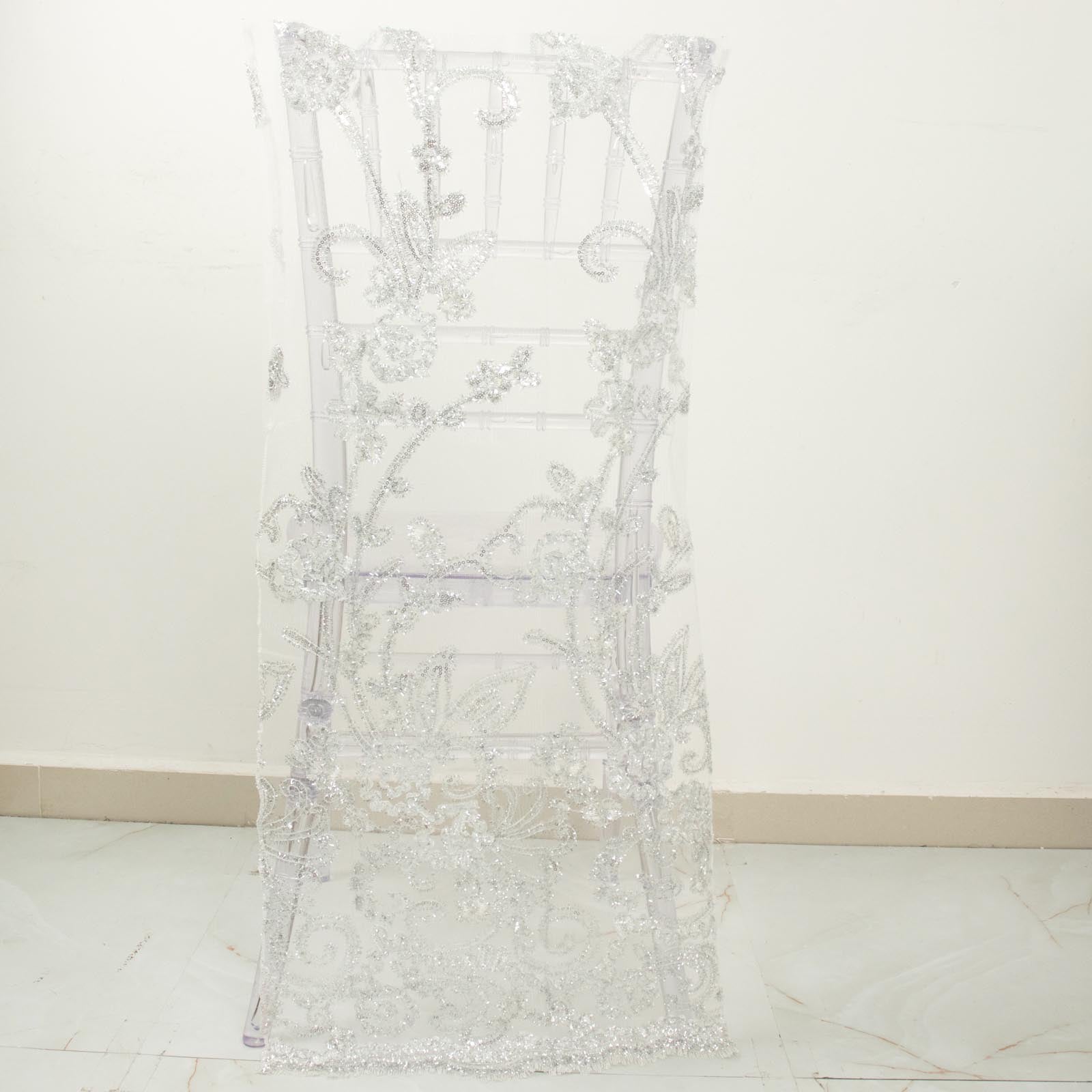 White Organza Floral Sequin Embroidered Wedding Chiavari Slipcover, Wedding Chair Back Lace Cover