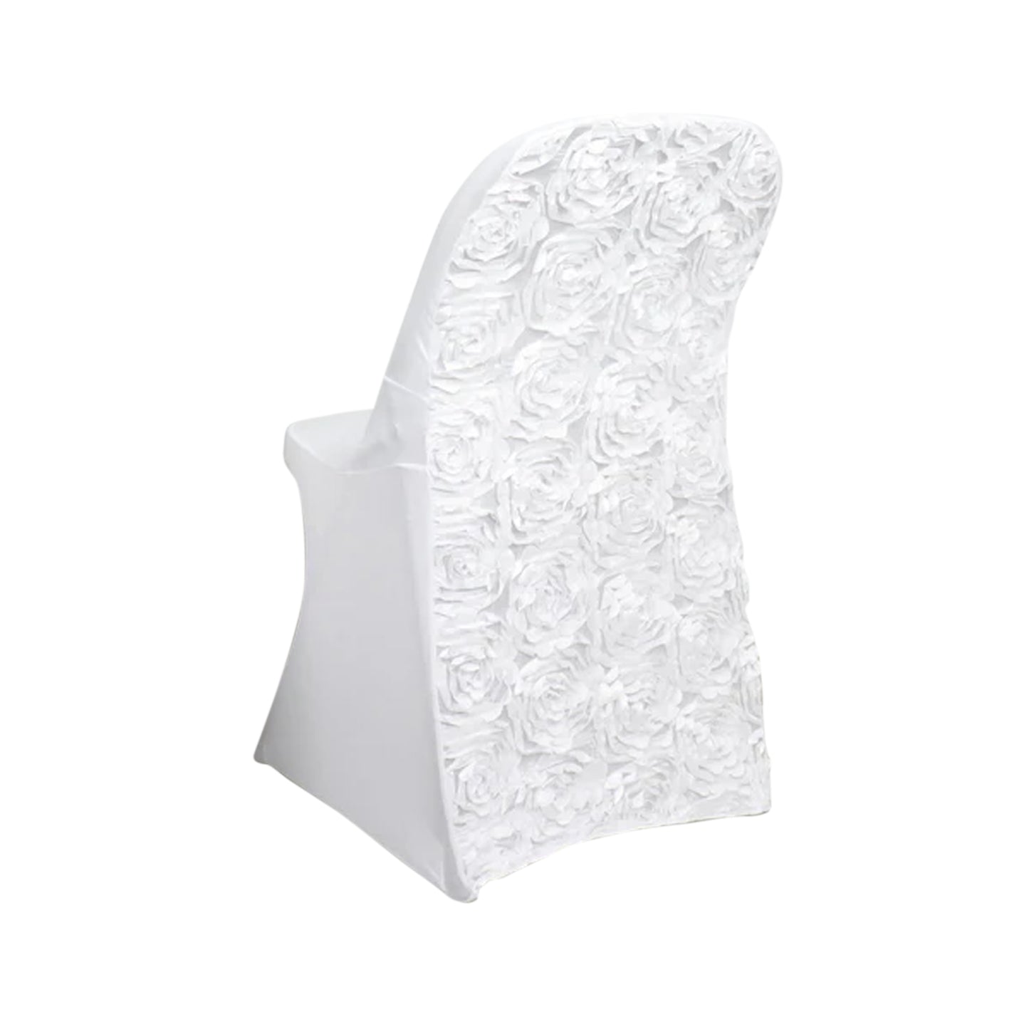White Satin Rosette Spandex Stretch Fitted Folding Chair Cover