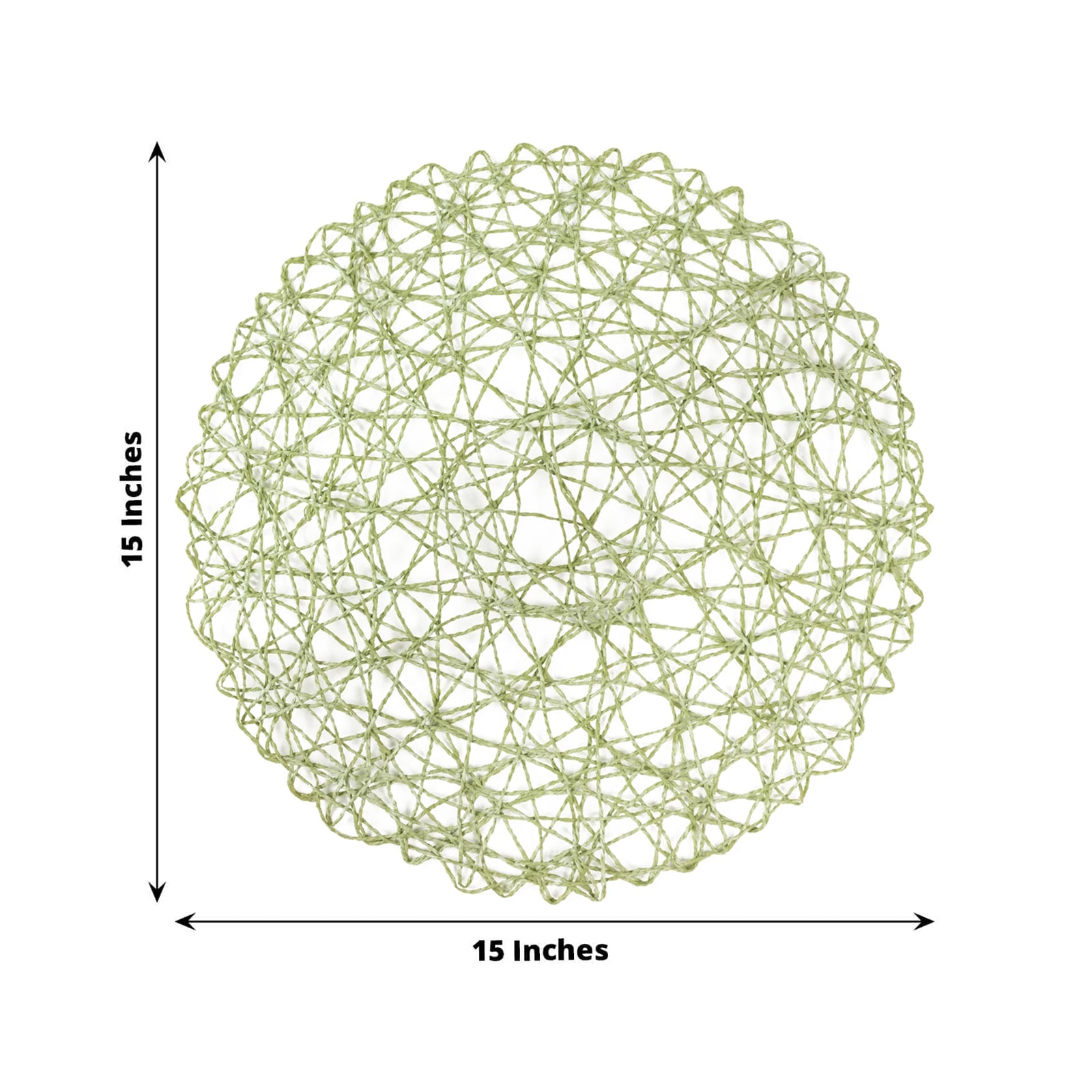 6-Pack Table Placemats Woven Fiber Design Sage Green Round - Disposable Mats for Dining and Events 15"